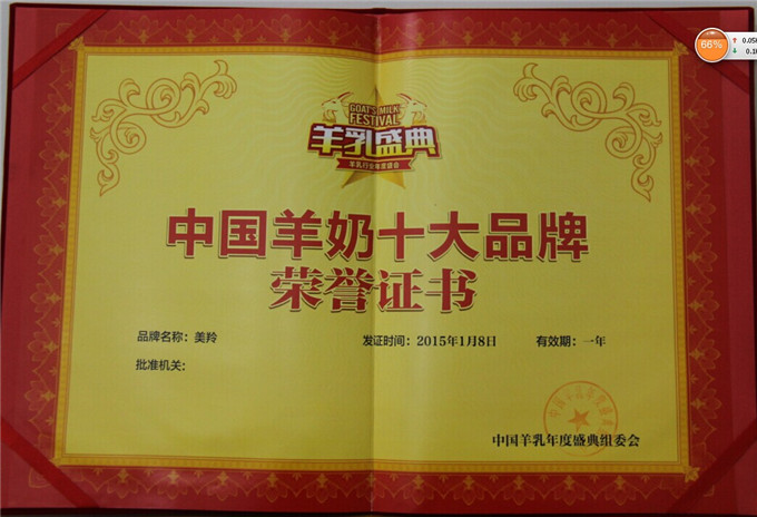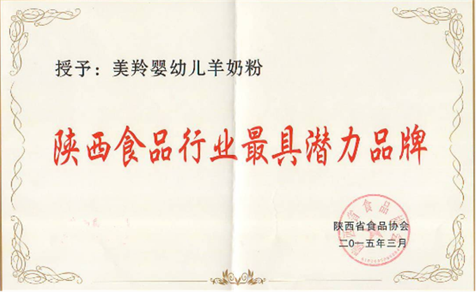 2015年公司荣获“2014年度羊奶十大企业”“2014年度羊奶十大品牌”;;;;;;旗下美羚婴幼儿羊奶粉 ,,,,,,,依附过硬的品质和优异的口碑 ,,,,,,,荣获由陕西省食物协会揭晓的2014年度“陕西食物行业最具潜力品牌”大奖。。。。 。