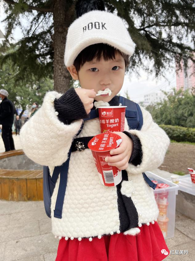 “我最喜欢草莓味的酸奶啦”
